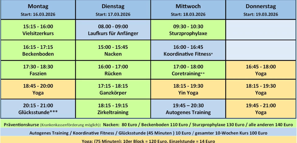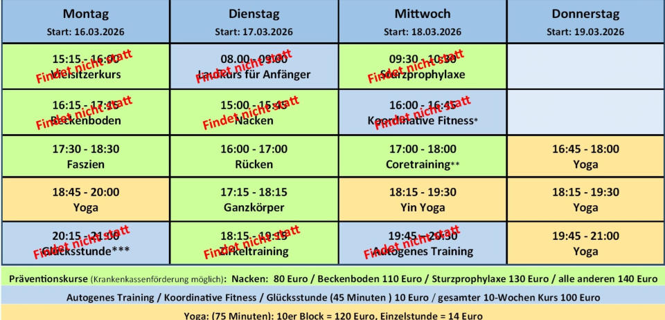Mein Kursplan ab 16. März für euch: