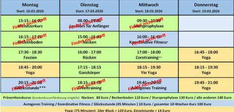 Mein Kursplan ab 16. März für euch: